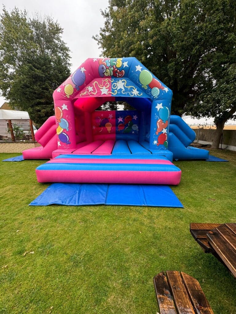 Check out this duel sided, 50/50 split bouncy castle with not 1 but 2 slides!