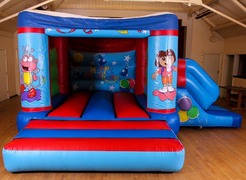 The whole set up includes pegs, mats, a blower, rain cover and all the necessary equipment to ensure a safe set up.