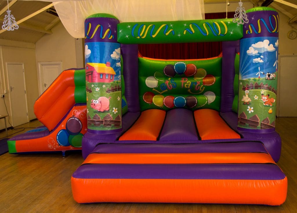 The whole set up includes pegs, mats, a blower, rain cover and all the necessary equipment to ensure a safe set up.