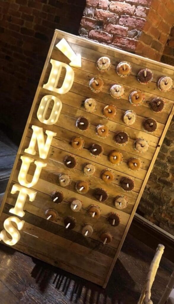 With space to display over 35 donuts, this eye-catching wall is perfect for weddings, birthdays, parties and events of all kinds. It’s guaranteed to get people talking (and queuing up!).