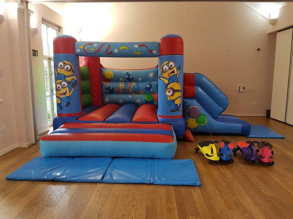 The whole set up includes pegs, mats, a blower, rain cover and all the necessary equipment to ensure a safe set up.