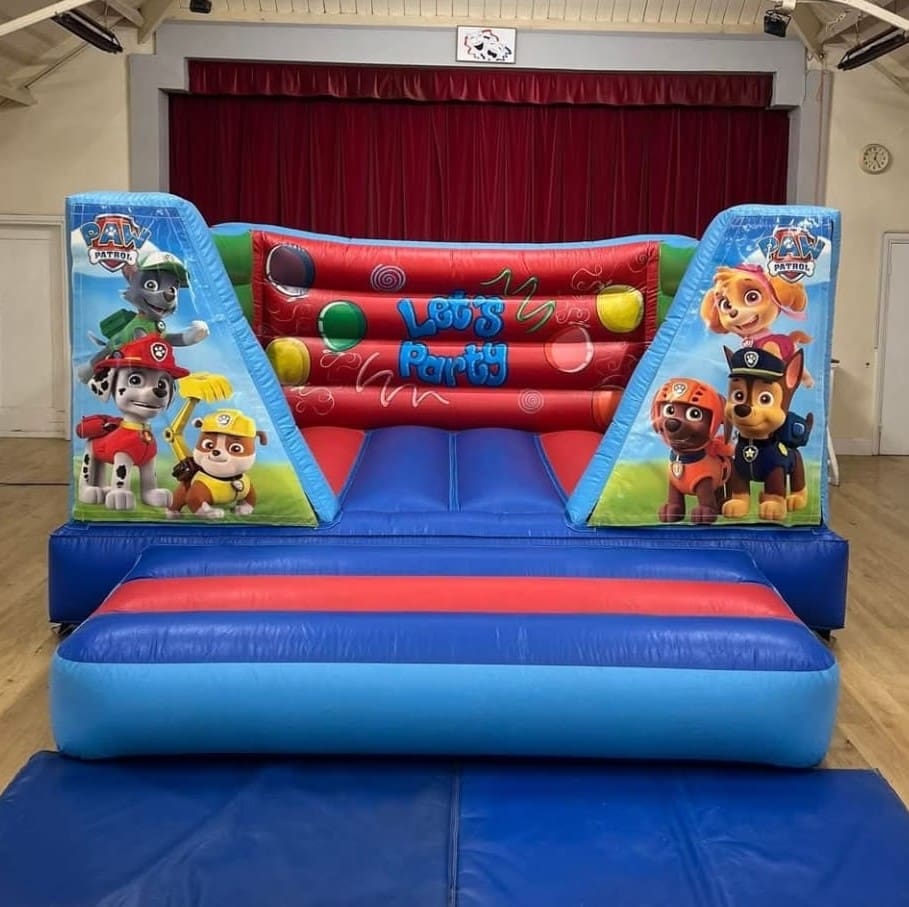 This Paw Patrol themed low walled bouncy castle is perfect for those places where ceiling height is an issue.
