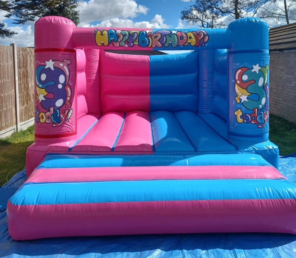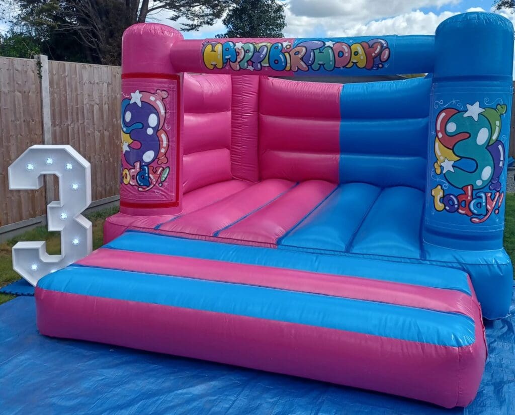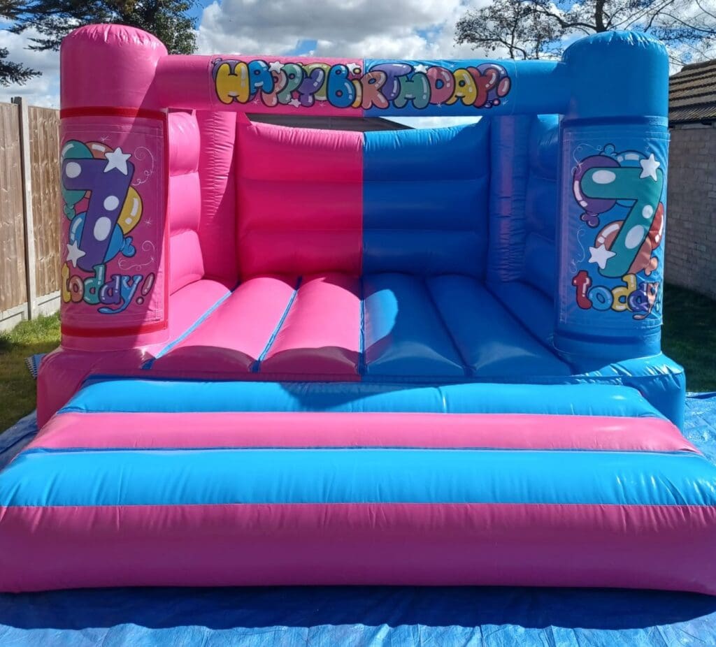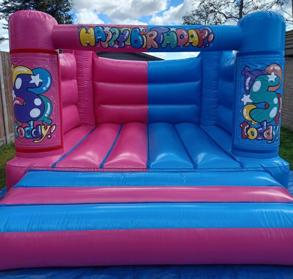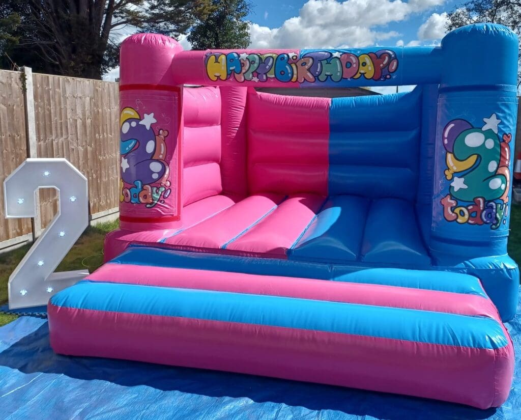 Our Pink & Blue Age Specific Bouncy Castle is designed especially for smaller children, making it ideal for toddler birthdays, nursery parties and mixed age events where you want something fun, safe and age-appropriate — with the added bonus of being able to display the child’s age on the front turrets!
