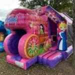 A 3d Princess themed inflatable bouncy castle with centered slide