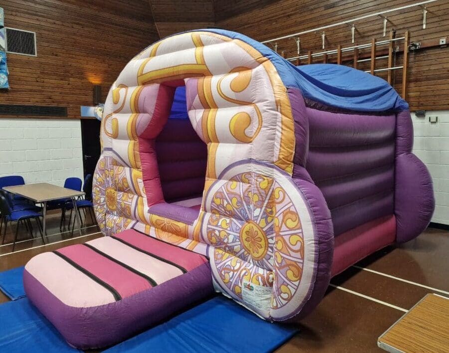 Turn any party into a magical fairy-tale adventure with our Enchanted Princess Carriage Inflatable! perfect for princess parties, birthdays, and royal celebrations, this whimsical carriage invites children to step inside and let their imaginations run wild. With its vibrant pink and purple design, ornate golden swirls, and padded entrance steps, it’s both safe and enchanting.