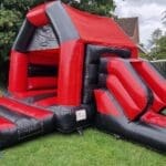 This shiny Red and Black castle with slide is another great addition to our growing selection of shiny themed bouncy castles.
